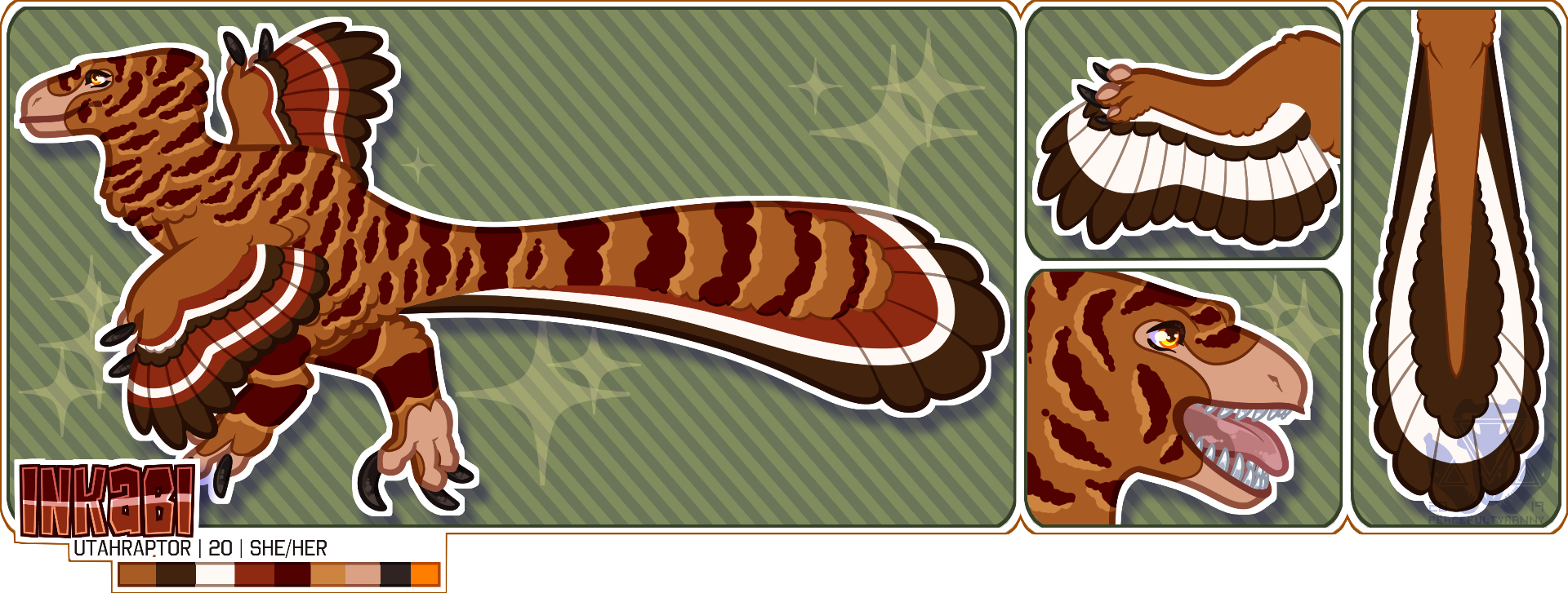 i'm dakota, a 24-year-old trans masc artist from ontario, canada. you may know me better as koda or rex!i specialize in dinosaurs and furries and i'm getting more comfortable drawing humans. i'm well-known for my sharp, clean lineart, bold colour choice, and love for sparkles. my art has a very distinct "sticker" aesthetic that looks perfect for print - almost all of my artwork features a transparent background with a cookie-cutter-like outline.i've been a furry for about 11-12 years now and i've been freelancing almost as long!